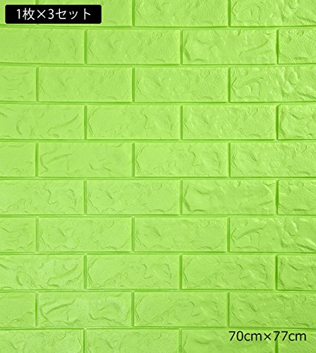 SOOMJ【お得3枚セット】ブリック タイル レンガ 壁紙シール 70cm×77cm ブリックステッカー 軽量レンガシール 壁紙シール アクセントクロス ウォールシール はがせる 壁シール (薄い)グリーン