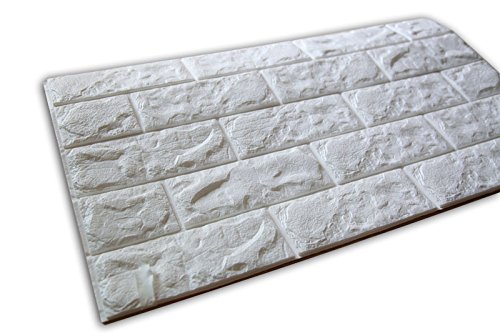 SOOMJ【5枚 薄い】ブリック タイル レンガ 壁紙シール 70cm×77cm ブリックステッカー 軽量レンガシール 壁紙シール アクセントクロス ウォールシール はがせる 壁シール (ホワイト)