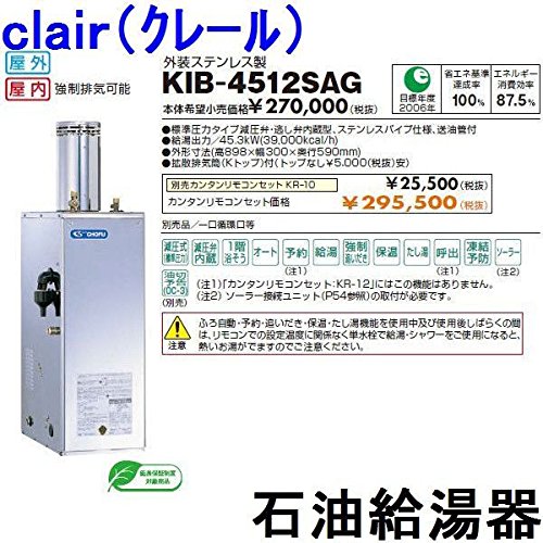 CHOFU (長府製作所 ) 石油給湯器 KIB-4512SAG KR-10 拡散排気筒付 【カンタンリモコン付】 強制追いだき減圧式(標準圧力) オートタイプ