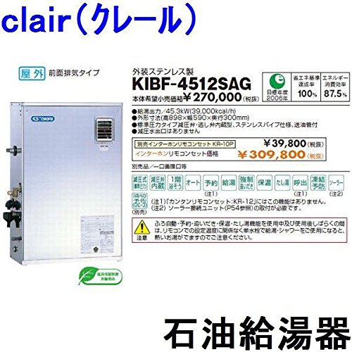 CHOFU (長府製作所 ) 石油給湯器 KIBF-4512SAG KR-10P 【インターホンリモコン付】 強制追いだき減圧式(標準圧力) オートタイプ