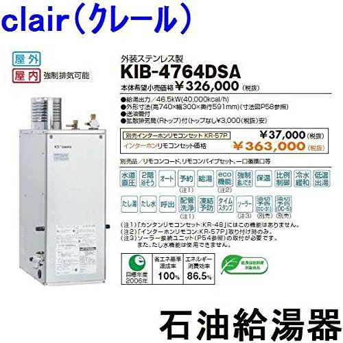CHOFU (長府製作所) 石油給湯器 KIB-4764DSA KR-57P 拡散排気筒付 【インターホンリモコン付】 強制追いだき水道直圧 オート