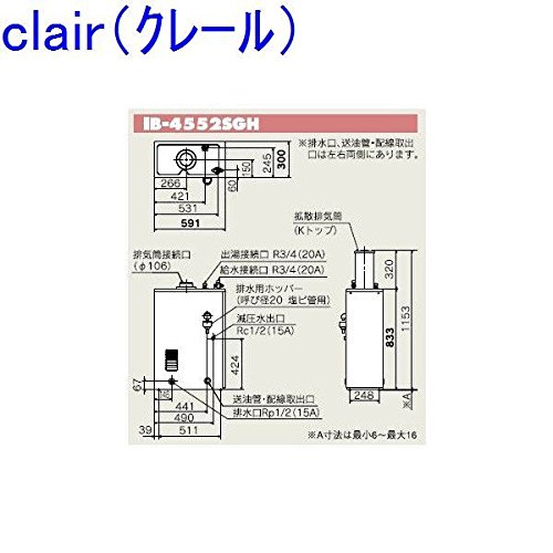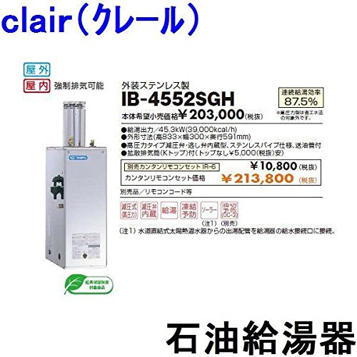 CHOFU (長府製作所 ) 石油給湯器 IB-4565SGH IR-6 拡散排気筒付 【カンタンリモコン付】減圧式(高圧力型) 給湯専用