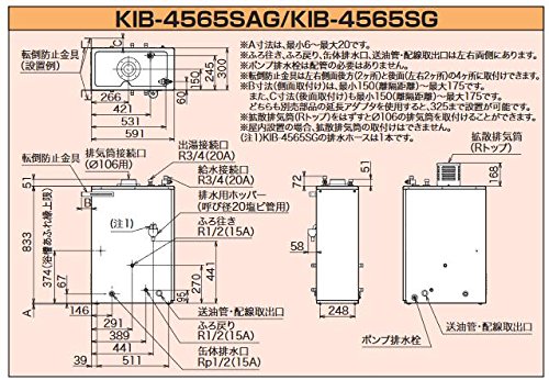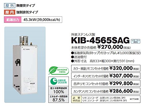 CHOFU (長府製作所 ) 石油給湯器 KIB-4565SAG KR-48 拡散排気筒付 【カンタンリモコン付】 強制追いだき減圧式(標準圧力) オートタイプ