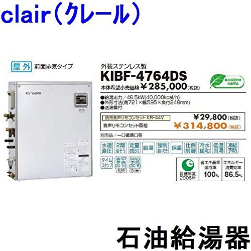 CHOFU (長府製作所) 石油給湯器 KIBF-4764DS KR-68V 【音声リモコン付】 強制追いだき水道直圧 定量お知らせ