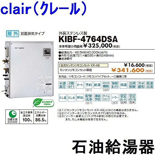 CHOFU (長府製作所 ) 石油給湯器 KIBF-4764DSA KR-48 【カンタンリモコン付】 強制追いだき水道直圧 オート