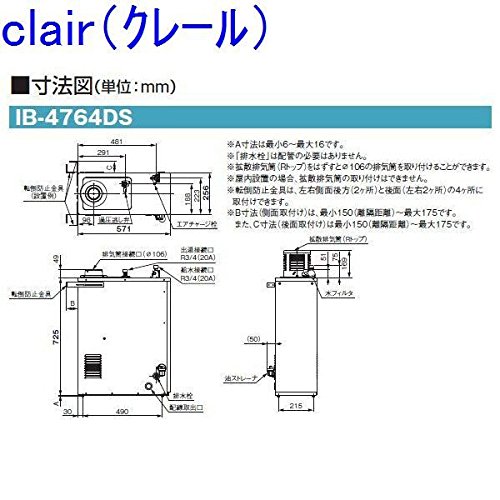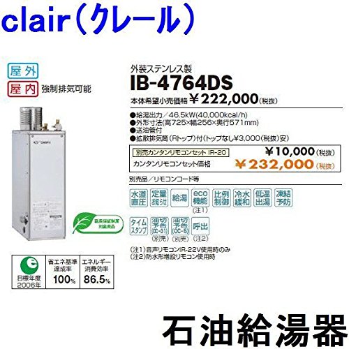 CHOFU(長府製作所) 石油給湯器 IB-4764DS IR-20 拡散排気筒付 【カンタンリモコン付】 給湯専用水道直圧