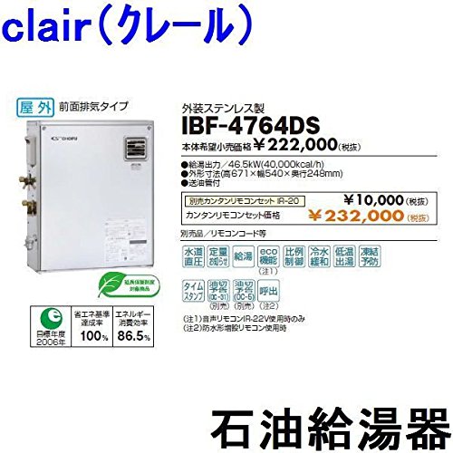 CHOFU (長府製作所 ) 石油給湯器 IBF-4765DSN IR-20 【カンタンリモコン付】 給湯専用水道直圧