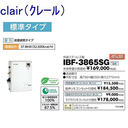 CHOFU (長府製作所 ) 石油給湯器 IBF-3865SG 【IR24台所リモコン付】減圧式(標準圧力) 給湯専用