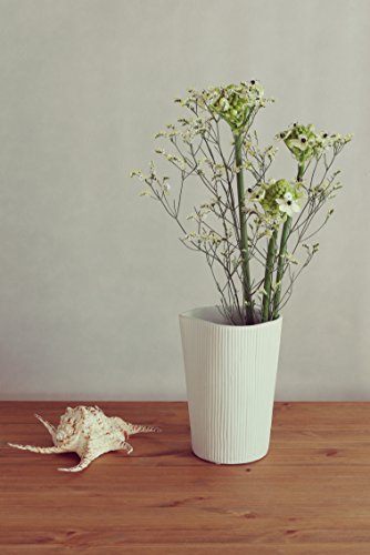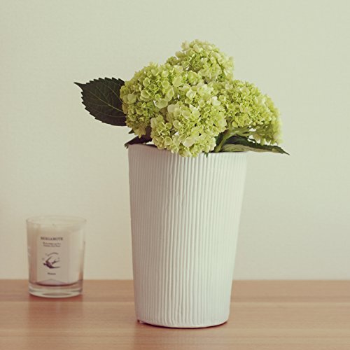 フローリスト向け花器で国内トップシェアを誇るClay社製。 プロのフラワーデザイナーもアレンジ制作に使用しています。 内側は上品な白ツヤ釉薬仕上げ、外側は職人によるハンドスクラッチにホワイトのペイント仕上げです。 口元の有機的なデザインは、見る角度により様々な表情をもちます。