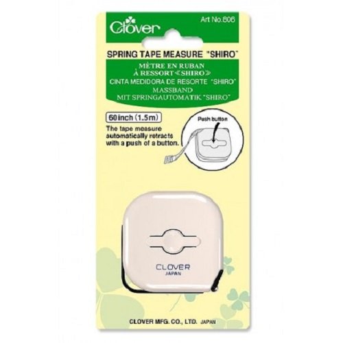 Clover Shiro Spring Tape Measures have fiberglass construction that prevents stretching. It is marked in both inches and centimeters. The push button center rewinds the tape measure. Measures up to 60 inch.