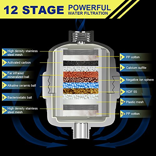 - 12層フィルターシステム(高密度ステンレスメッシュ、PP綿フィルター、活性炭、亜硫酸カルシウム、遠赤外ミネラルボール、イオンボール、セラミックボール、KDF-55、抗菌ボール、プラスチックメッシュ、ステンレススチールメッシュ、PP綿フィルター)を使用して水をろ過します。高品質のABS製、錆びたり消えたりすることはないです。