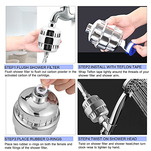 - 【パッケージ内容&保証】●シャワーフィルタシェル × 1●12ステージフィルタカートリッジ × 2 ●シールリング × 2●テフロンテープ × 1一年間の保証付きです。商品について、何か問題があれば、お手軽にご連絡ください。