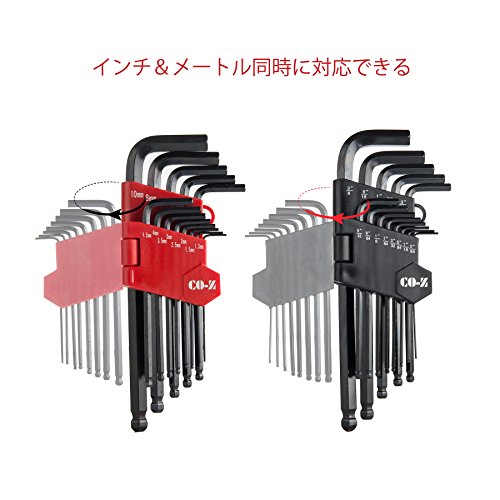 CO-Z L型 六角棒レンチ セット ボールポイント ロング六角棒レンチセット インチ&メートル 精密 各13本組 26本セット