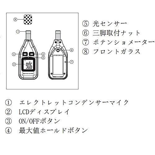 - 2、多機能:最大値ホールド機能搭載、計測の最大値を表示できます。瞬間の音計測機能も搭載しております。