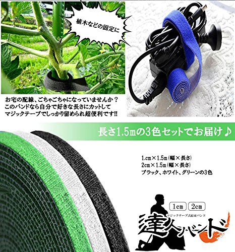 COM-SHOT 【 3色セット 】 マジックテープ式 結束バンド 1.5m 太さ 1cm 2cm DIY 3個セット ガーデニング ケーブル 【 幅1cm 】 MI-TATUBAN-1