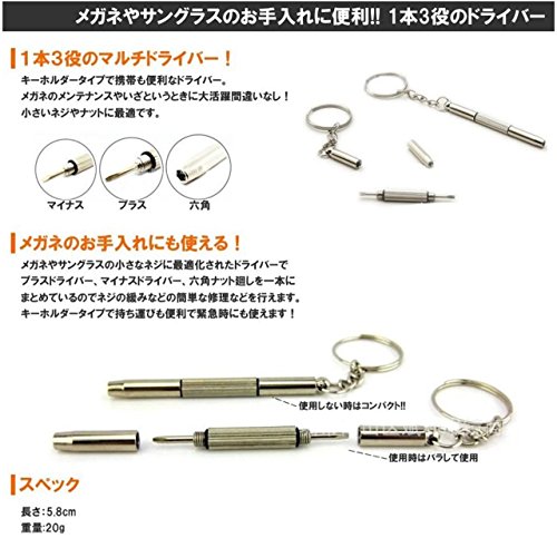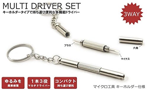 【 3WAY 小型 マルチ ドライバー 】 プラス マイナス 六角 セット メガネ 修理 キーホルダー 型 小物 コンパクト MI-MEGATAKI