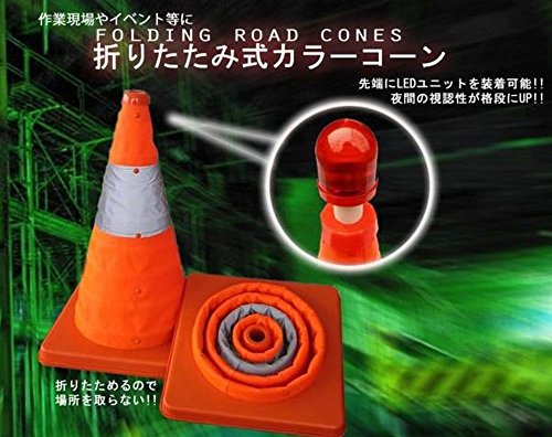 COM-SHOT 【 折り畳み コンパクト 】 スリム 三角 カラー コーン 【 LED ライト ユニット 付き 】 MI-CORN01