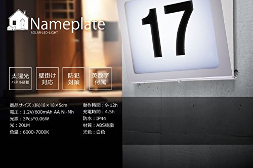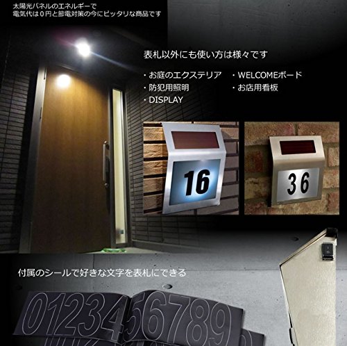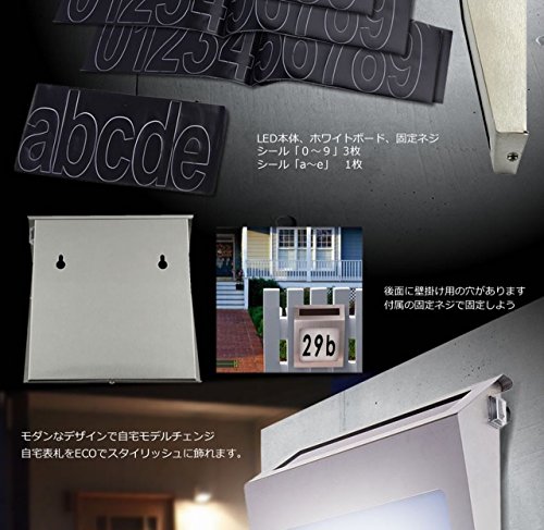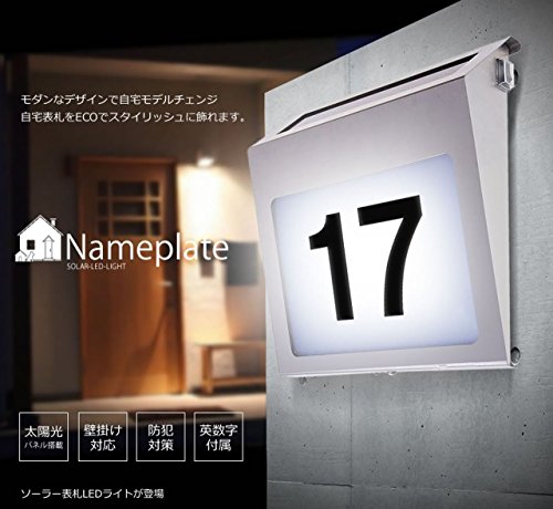COM-SHOT 【 電気代 0円 】 光る ネーム プレート 防水 LED 太陽光 パネル 搭載 デザイン ライト おしゃれ 玄関 防犯 ホワイト MI-NAMEPL