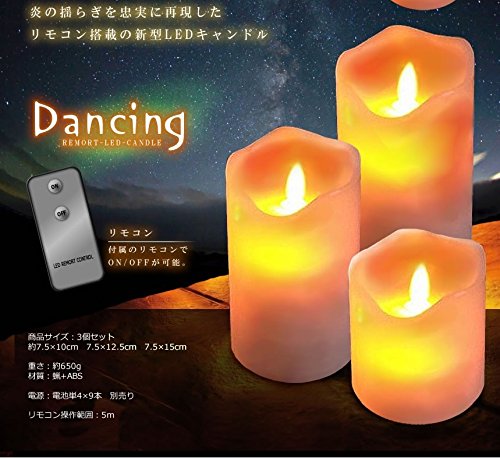 COM-SHOT 【 3個 セット 】 ワイヤレス LED キャンドル ライト リモコン 付き 【 揺れる 炎 を演出 】 イベント パーティー MI-RIMOSAN