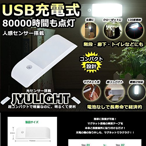 1stモール 人感センサー搭載 LEDライト 照明 自動点灯 コンパクト 充電式 USB LED照明 LED ライト フットライト 足元 ST-JYULIGHT