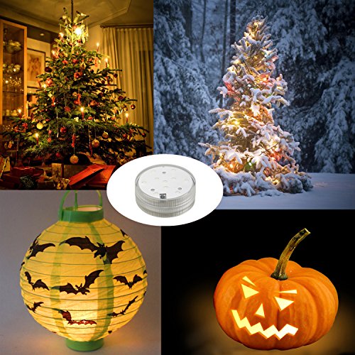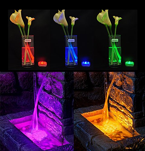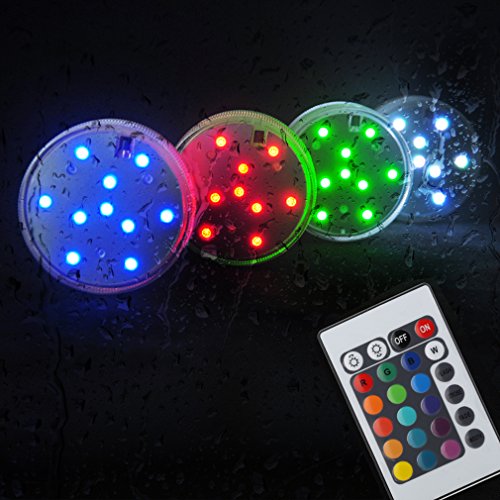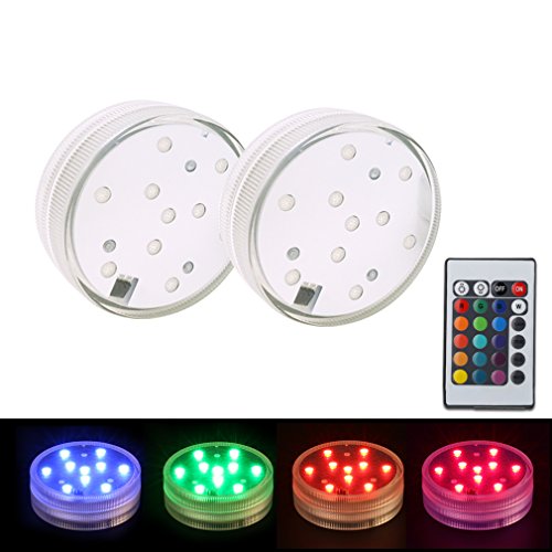 COOLWEST 10LED 水中 RGB 潜水ライト IP68 花瓶、金魚鉢、水族館、水槽照明 24キーリモコン付き、2個入(含まれていない電池)