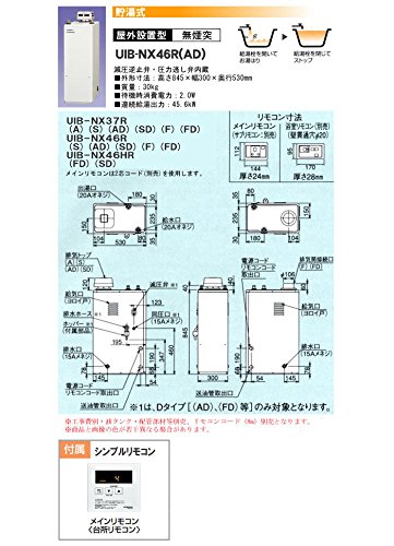 石油給湯器 給湯専用貯湯式ボイラー 屋外設置/無煙突型 UIB-NX46R(AD) リモコン付