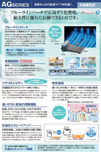 ガス式給湯器の場合、一般的に石油給湯器よりも着火に時間がかかります。しかし、清音低振動でコンパクト設計のアビナシリーズは、近隣との距離が近い住宅地には最適な給湯器です。