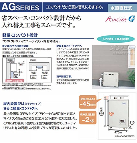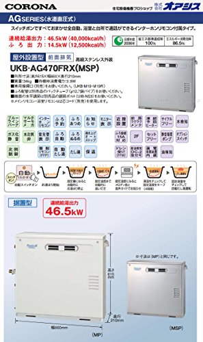 46.5kW直圧式 ガス化燃焼石油給湯器アビーナG UKB-AG470FRX(MSP) 給湯+追いだき フルオート 屋外 ステンレス外装 前面排気 インターホンリモコン