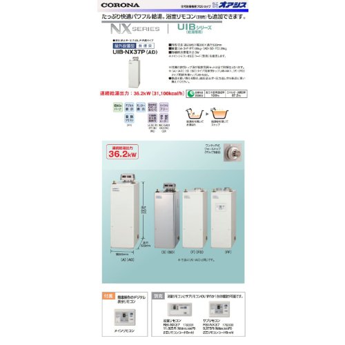 コロナ 石油給湯器 給湯専用貯湯式ボイラー 屋外設置/無煙突型 UIB-NX37P(AD) リモコン付