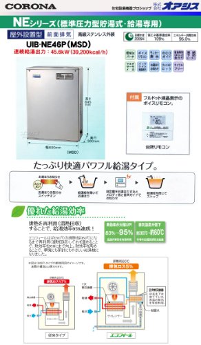 45.6kW貯湯式 標準圧力型石油給湯器 エコフィール UIB-NE46P/MSD 給湯専用 屋外 前面排気 ボイスリモコン