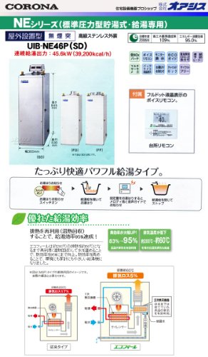 45.6kW貯湯式 標準圧力型石油給湯器 エコフィール UIB-NE46P/SD 給湯専用 屋外 無煙突 ボイスリモコン