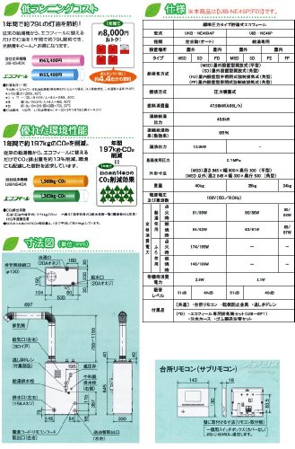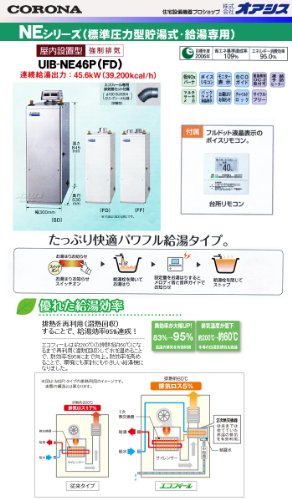 45.6kW貯湯式 標準圧力型石油給湯器 エコフィール UIB-NE46P/FD 給湯専用 屋内 強制排気 ボイスリモコン