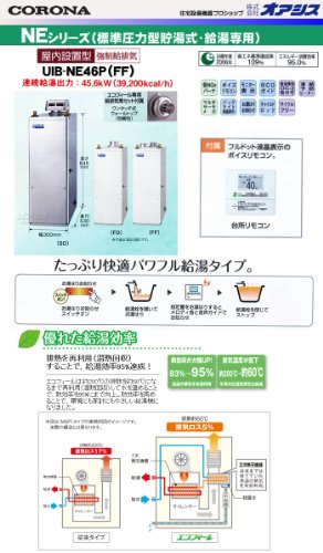 45.6kW貯湯式 標準圧力型石油給湯器 エコフィール UIB-NE46P/FF 給湯専用 屋内 強制給排気 ボイスリモコン