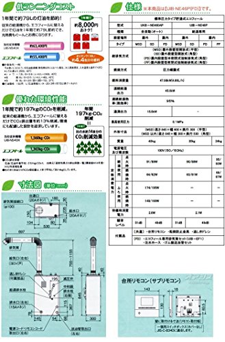 - 型式:UIB-NE46P/FD・屋内設置型・強制排気・デジタル表示リモコン
