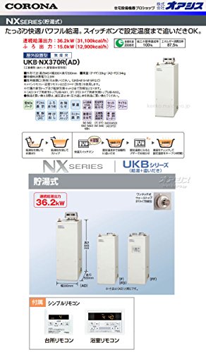 36.2kW貯湯式 石油給湯器NXシリーズ UKB-NX370R/AD 給湯+追いだき 屋外 無煙突