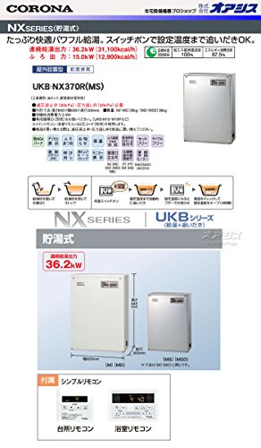 36.2kW貯湯式 石油給湯器NXシリーズ UKB-NX370R/MS 給湯+追いだき 屋外 前面排気 ステンレス外装