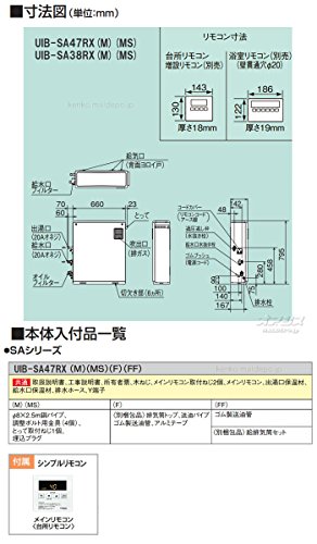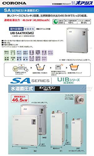 46.5kW直圧式 石油給湯器SAシリーズ UIB-SA47RX/MS 給湯専用 屋外 前面排気 ステンレス外装 ボイスリモコン