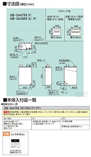 46.5kW直圧式 石油給湯器SAシリーズ UIB-SA47RX/F 給湯専用屋内 強制排気 ボイスリモコン