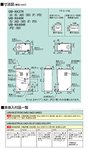 石油給湯器 給湯専用貯湯式ボイラー 屋外設置/無煙突型 UIB-NX37R(S) リモコン付 高級ステンレス外装 減圧弁・逃し弁無し