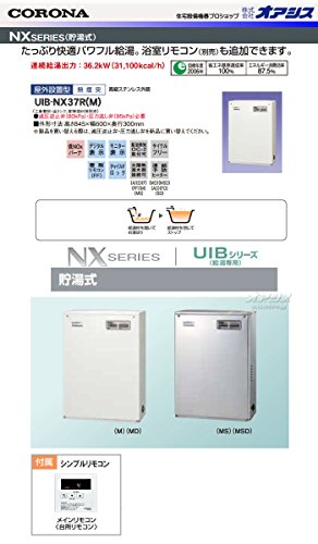 コロナ灯油ボイラー給湯専用貯湯式 UIB-NX37P(M)前面排気型 メインリモコン付属のご紹介です。