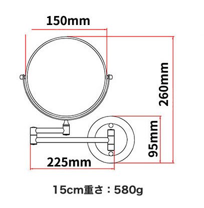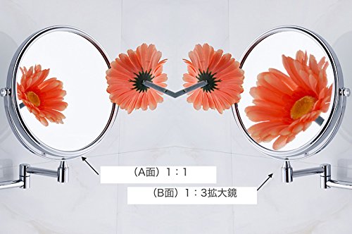 【伸縮折りたたみアームミラー 片面3倍拡大鏡】【サイズ】ミラー直径15cm 【パッケージ】壁付けミラー、固定用ねじ 【仕様】 ・360度回転、表は等倍、裏は3倍強の拡大率になっている両面鏡。 ・ヘアセット、シェービング等で、これまで見えずらかった場所も角度を調整する事で解決! ・毎朝の身だしなみチェックに!朝の忙しい時もサッと引き出して、サッとしまえるので、時間短縮にもなります。