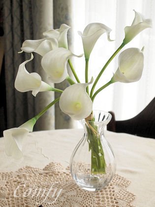 お花を飾るなら、なんといっても生花が一番素敵です! でもお手入れが結構大変だったりしますよね。 こんなに素敵な造花だったらいかがでしょう? まるで本物そっくりですね! 花弁や葉、茎にワイヤーが入っているので、表情を思い通りに変えることができます。 イメージや気分に合わせて飾ってみましょう! ちょっとしたギフトにも喜ばれそうですね。 9輪のブーケです。 サイズ:w15×D15×H35cm 素材:ポリエステル(PU仕上げ)、スチール