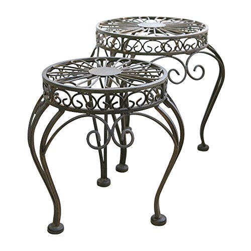 アンティークブラウンの落ち着いた雰囲気のフラワースタンド2点セット! クラッシックな魅力あふれるスタンドは、ガーデンにもインテリアにもしっくり馴染みます。 お花をさりげなく飾ったり、マスコットを乗せてお庭のアクセントにしたり。 アイディア次第で用途いろいろです! アンティーク仕上げのため、わざと錆びやはがれ、傷などをつけています。 サイズ:L、W37×D37×H36cm S、W31×D31×H32cm 天面サイズ:L、Φ29.5cm S、Φ25cm 材質:スチール 色:アンティークブラウン 耐荷量:L、3kg S、2kg