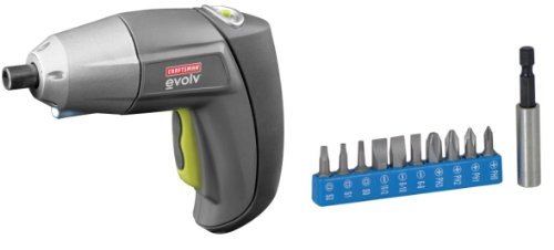 The Craftsman-Evolv 3.6 volt Screwdriver has a LED worklight that illuminates the work area. 1/4 in. Collet for 1/4 in. hex bits. 200 RPM/27 in. lbs. Torque power for many household tasks. Forward/Reverse switch controls the direction of the rotation. Ergonomic soft-grip handle for maximum comfort and control. Integrated 3.6 volt NiCd Battery with charger. Includes: Screwdriver, charger and manual. Craftsman Quality tool.