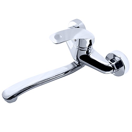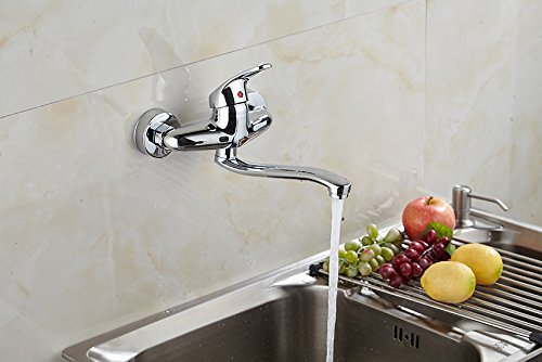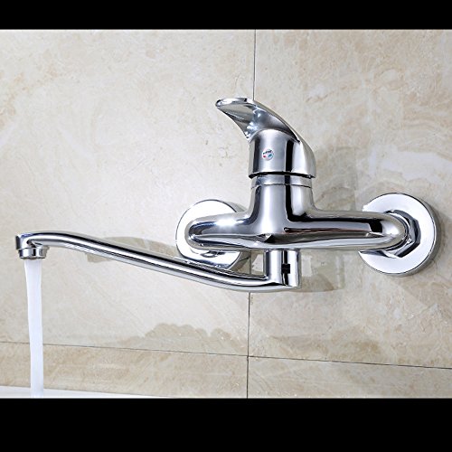【クラシップ】 シングルレバー混合水栓 蛇口 壁付け 水栓金具 蛇口 泡沫 キッチン用 360度回転 台所 流し台 金属ハンドル (シルバー)