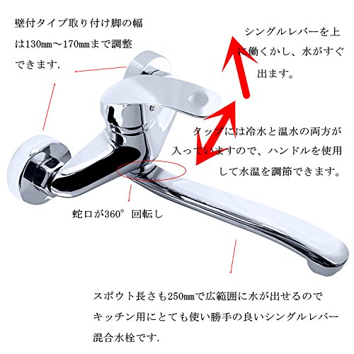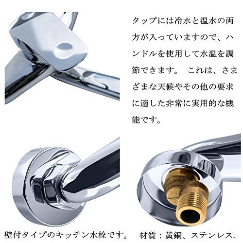 - 壁付タイプのキッチン水栓です。エコハンドル仕様の為、お湯と水の切替の時にクリック感があります。