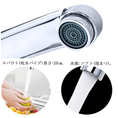 - 蛇口が360°回転し、キッチン用にとても使い勝手の良いシングルレバー混合水栓です