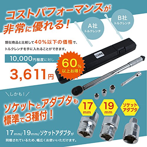 CURE(キュア) トルクレンチ プレセット型 1/2 28-210Nm ソケット 2種 17mm 19mm ソケットアダプタ エクステンションバー 専用ケース 5点セット