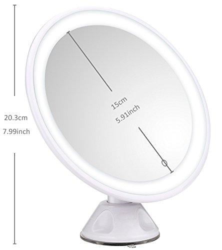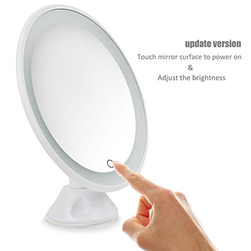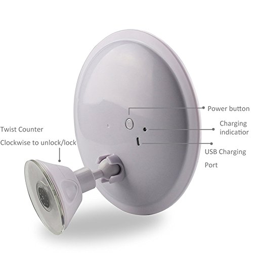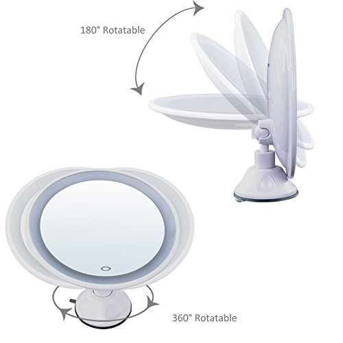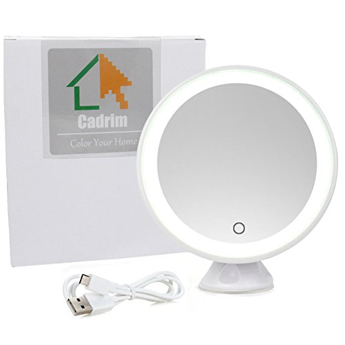 【Cadrim】 化粧鏡 LED化粧鏡 卓上ミラー メイクミラー スリム吸盤ミラー 壁付ミラー メイク道具 浴室鏡 手鏡 両面鏡 化粧、髭剃り用曇らない鏡 7倍拡大鏡 タッチパネル LEDライト付き 強力吸盤付き USB付き 360度回転 円形 ホワイト