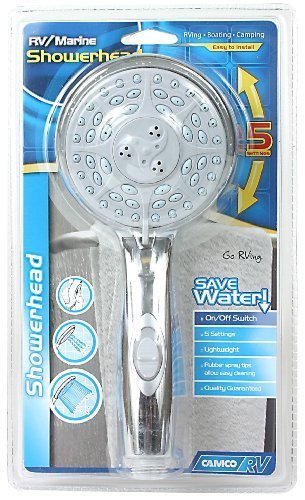 Camco RV Chrome Shower Head with On/Off Switch allows you to enjoy longer showers with this ergonomically designed, handheld showerhead. Handy on/off switch allows you to pause water flow while shampooing, greatly reducing the amount of water used. Choice of five spray patterns from a drenching rain to a gentle massage.